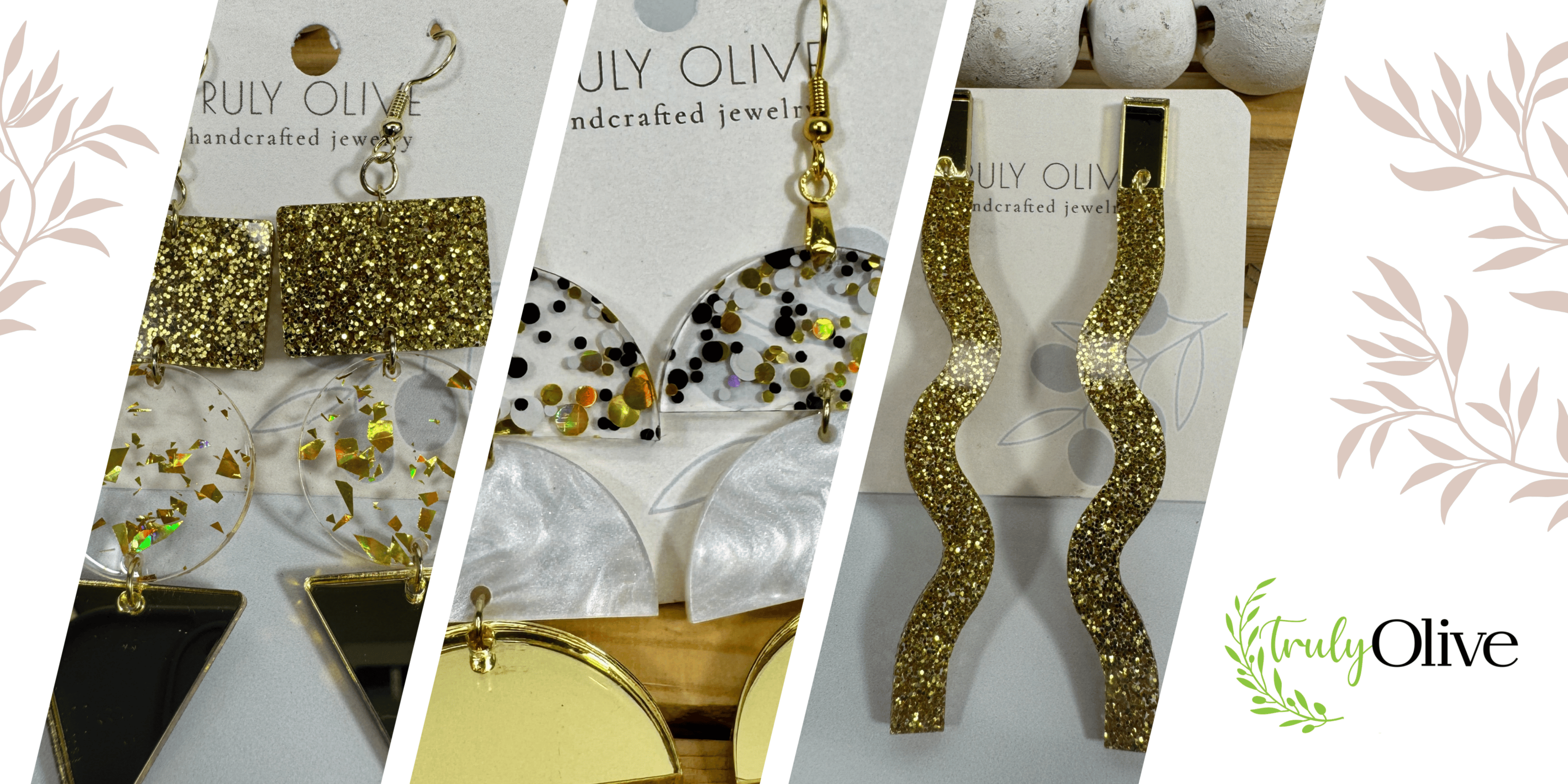 A unique collection of glittery gold lightweight holiday earrings. Beautiful stunning mirrored...