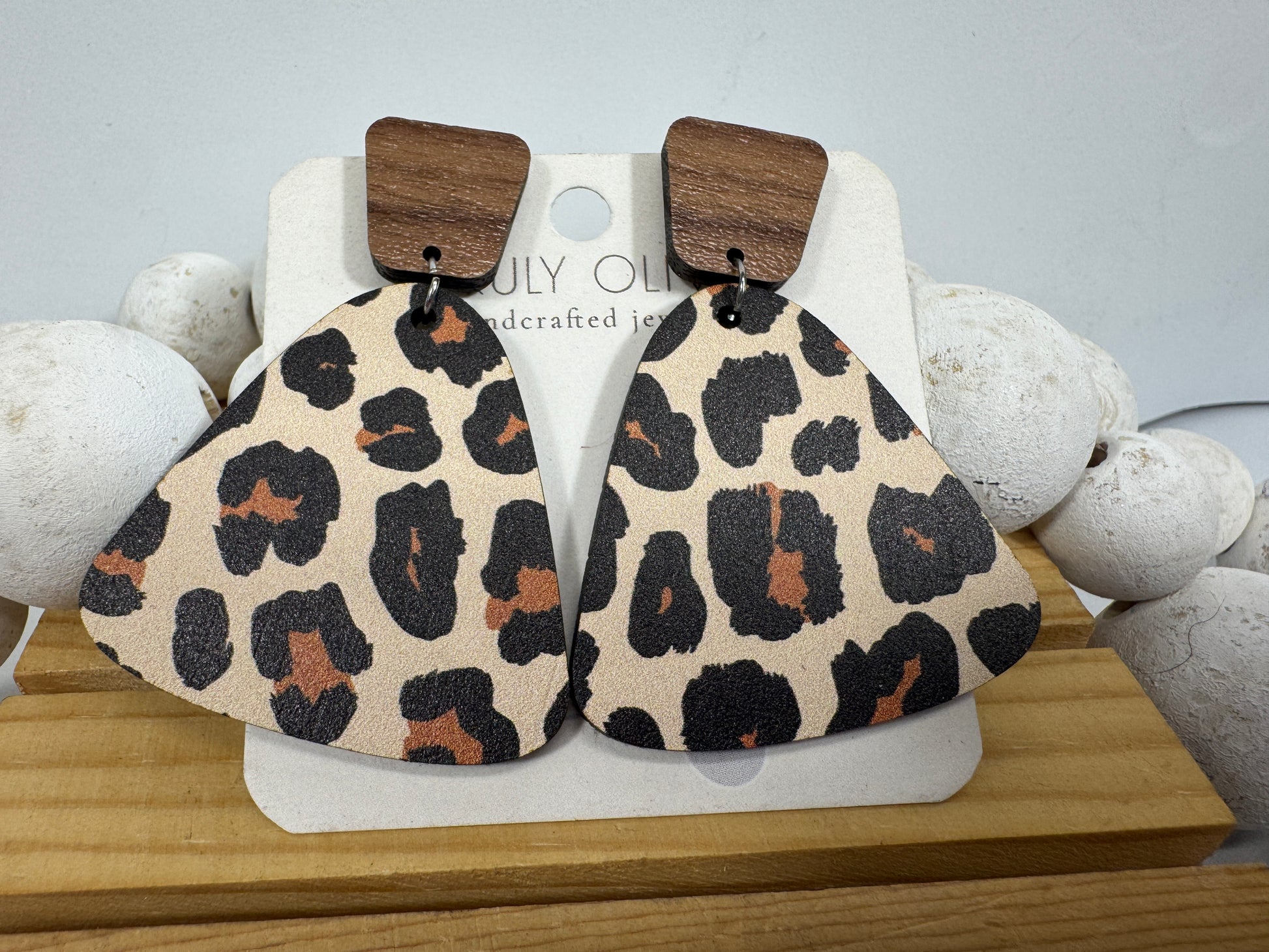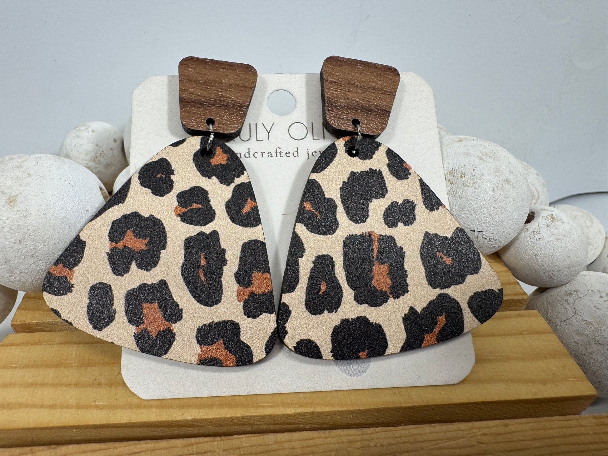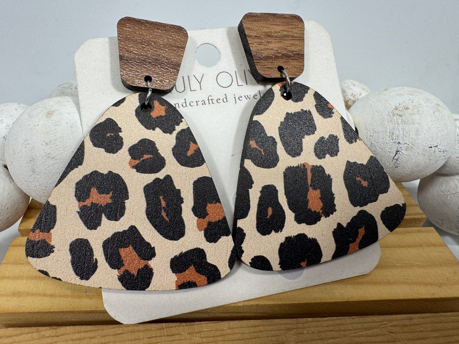 Exotic Leopard Print Reclaimed Wood Earrings Handcrafted