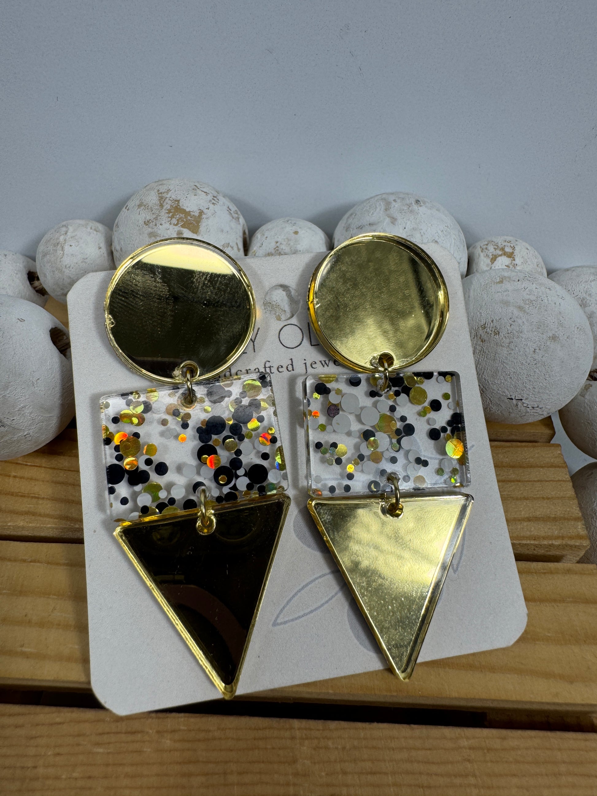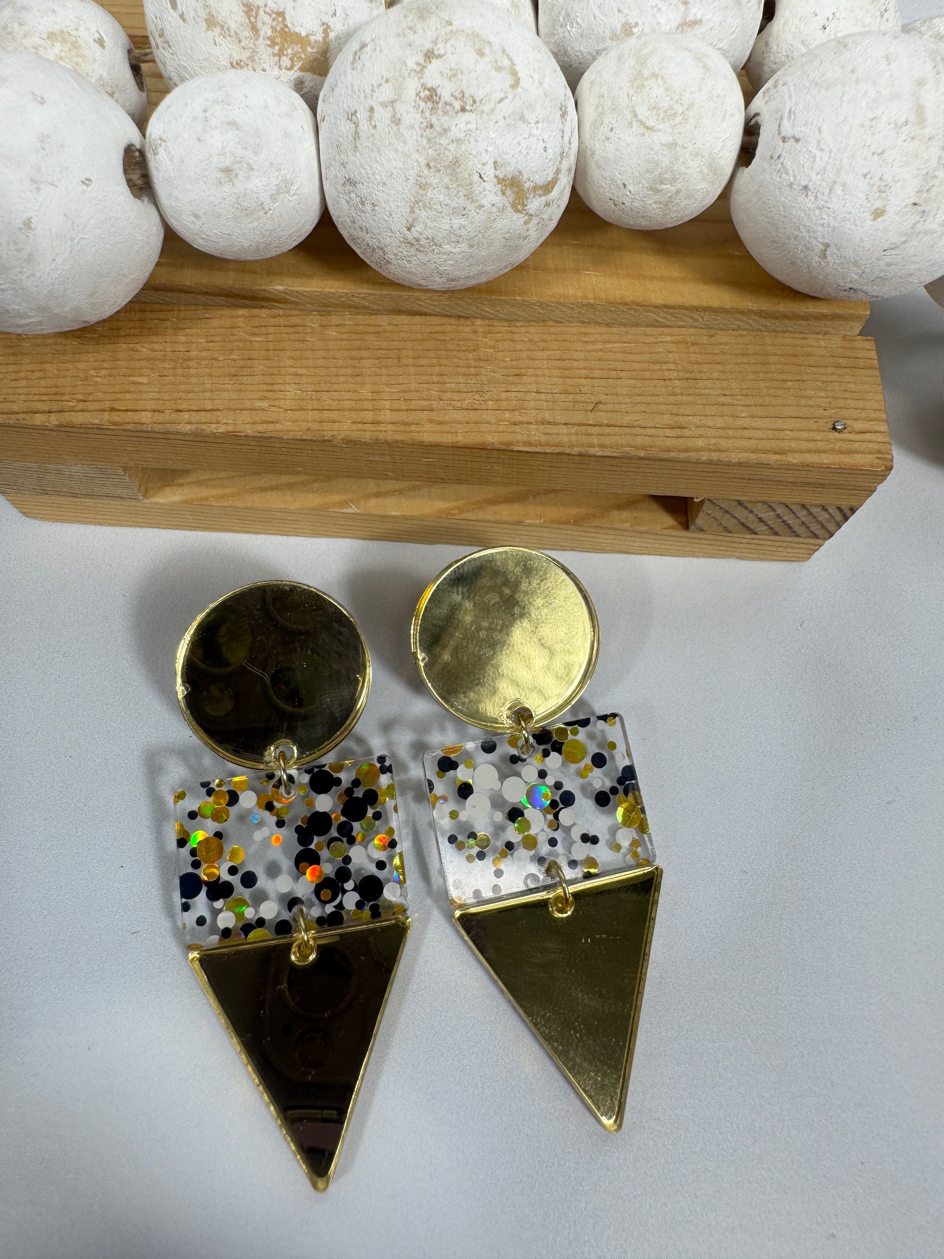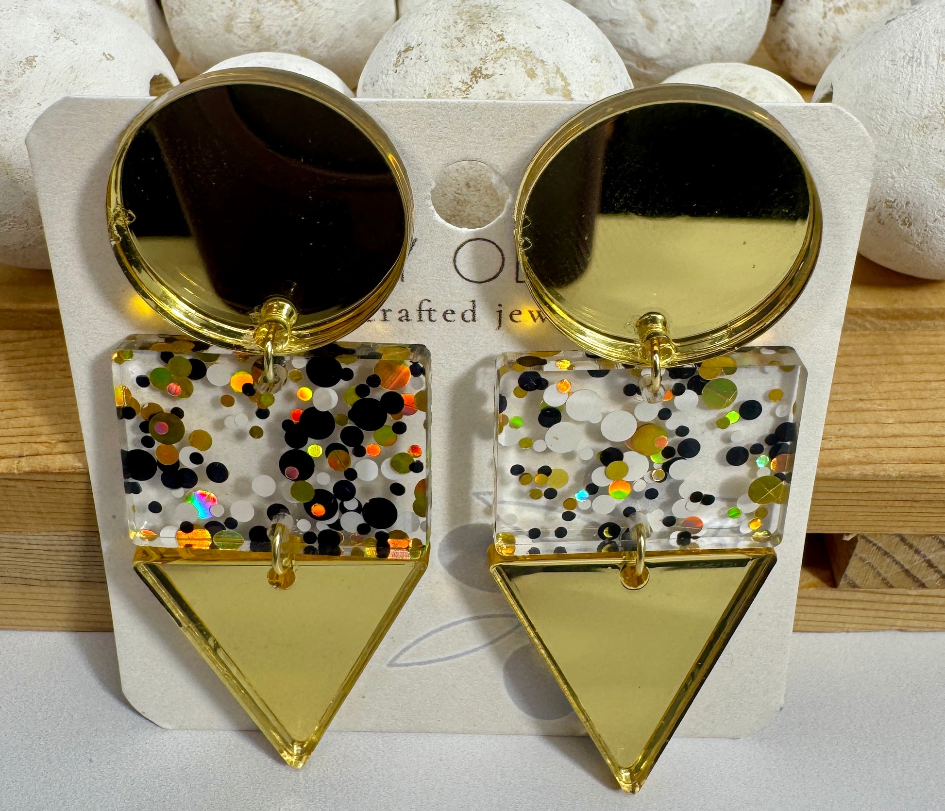 Gold Black and White Glitter Confetti Acrylic Earrings
